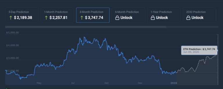 Looking ahead, the platform projects that Ethereum could continue to gain momentum over the next few months. One estimate places ETH around $3,747.74 by June 5, 2026. Reaching that level from current prices would represent an increase of roughly 89%.