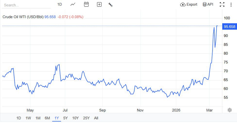 At the time of writing, West Texas Intermediate (WTI) crude oil was trading near $95, reflecting a sharp rise since geopolitical tensions escalated earlier this year. If oil continues climbing toward extreme levels such as $200 per barrel, the macroeconomic effects could significantly affect assets like XRP.