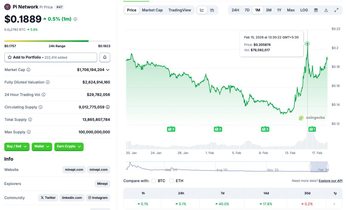 That said, Pi Coin’s price jump appears to be driven primarily by project-specific developments rather than general market conditions. The launch of Pi Network’s mainnet and a series of important upgrades, which began around February 15, 2026, have drawn significant attention. These updates are designed to push the network toward greater decentralization, increasing confidence among users and investors. As interest grew, demand for PI followed.