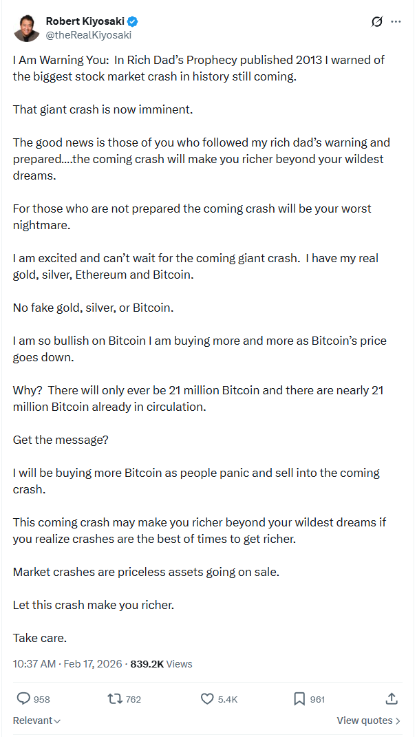 “The Giant Crash Is Now Imminent,” Kiyosaki Says